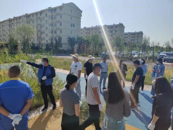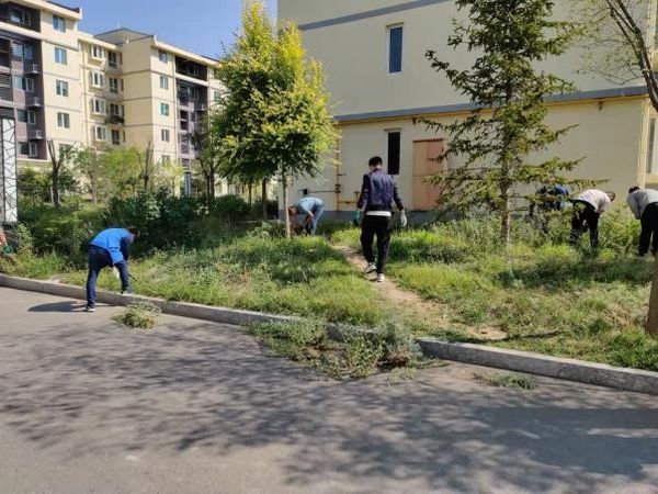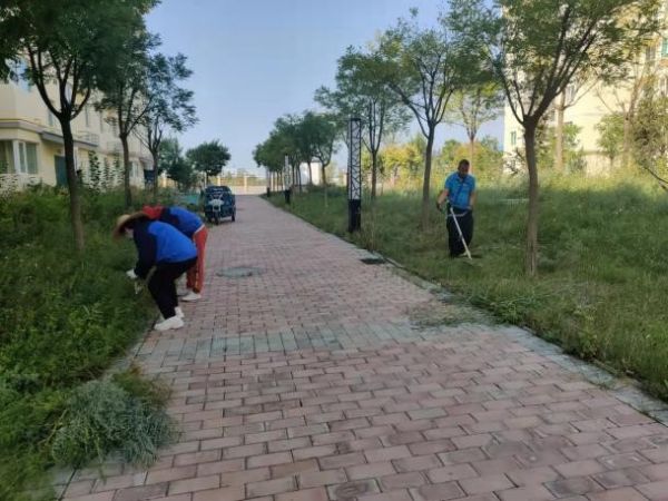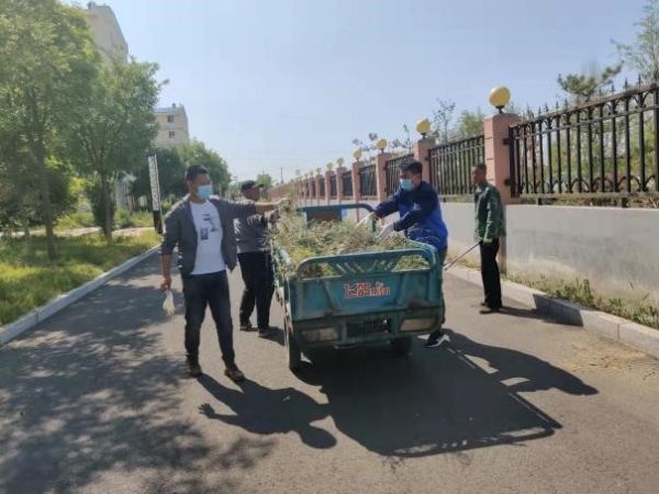 圖為愛邇及駐廠企業(yè)職工開展除蒿草活動(dòng)