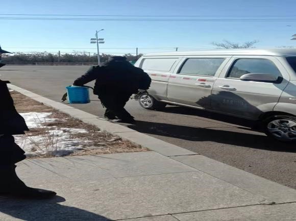 圖為愛邇公司對(duì)廠區(qū)環(huán)境及車輛進(jìn)行全面消殺