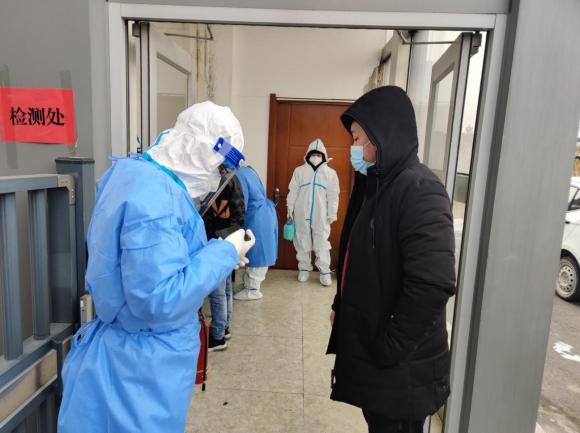 圖為愛邇公司組織廠區(qū)人員有序進(jìn)行核酸檢測(cè)