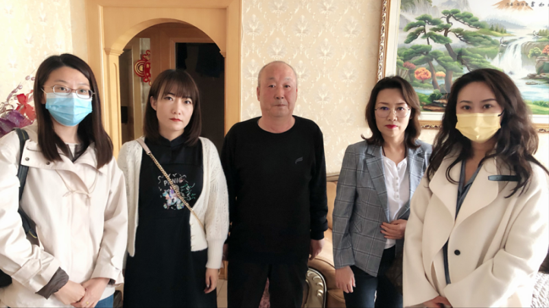 圖為工會(huì)主席張冬梅探望寧澤英家屬現(xiàn)場(chǎng)