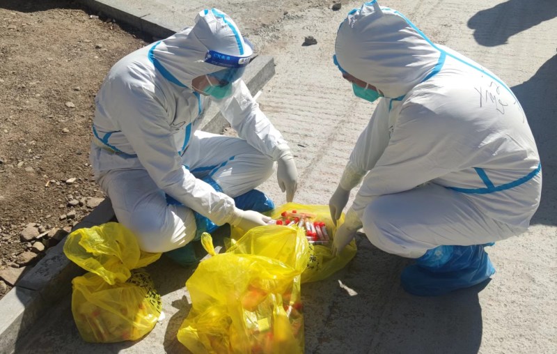 圖為開投集團(tuán)員工對(duì)核酸樣本進(jìn)行匯總整理