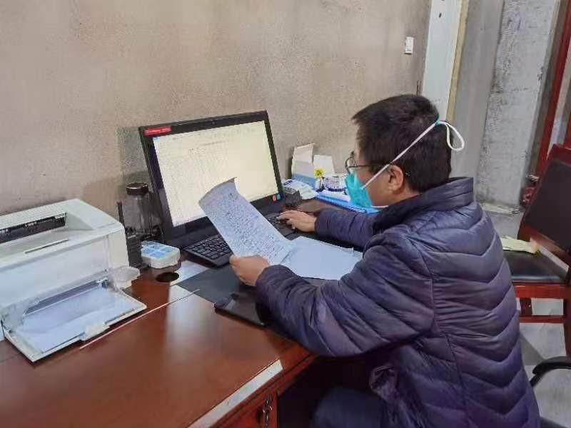 圖為姜鵬在中此老村為村民錄入核酸信息
