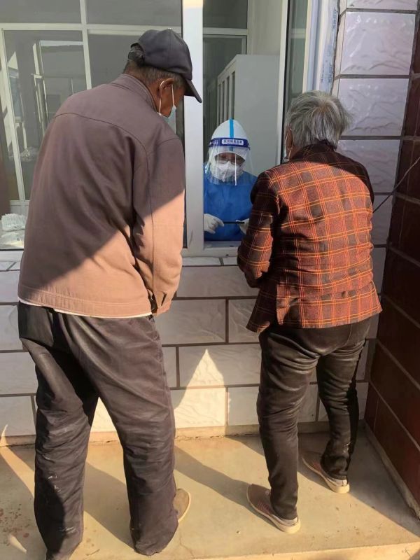 圖為閆亞文在紅山口村進(jìn)行核酸采集工作