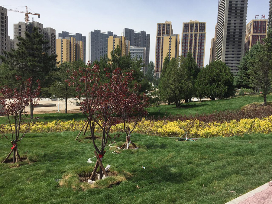 綠化已完成90%;景觀管道土方、鋪裝土方已全部完成;景觀給排水外線、景觀電氣工程、鋪裝工程完成80%;東側(cè)青城驛站砌筑、內(nèi)墻抹灰、屋面找坡、保溫及找平層已完成;西側(cè)青城驛站砌筑、內(nèi)墻抹灰、屋面保溫、地面墊層、保溫已完成。廊架一、連廊、單臂花架、景觀三角亭主體、景觀廊架四基礎(chǔ)、方鋼廊架已完成。